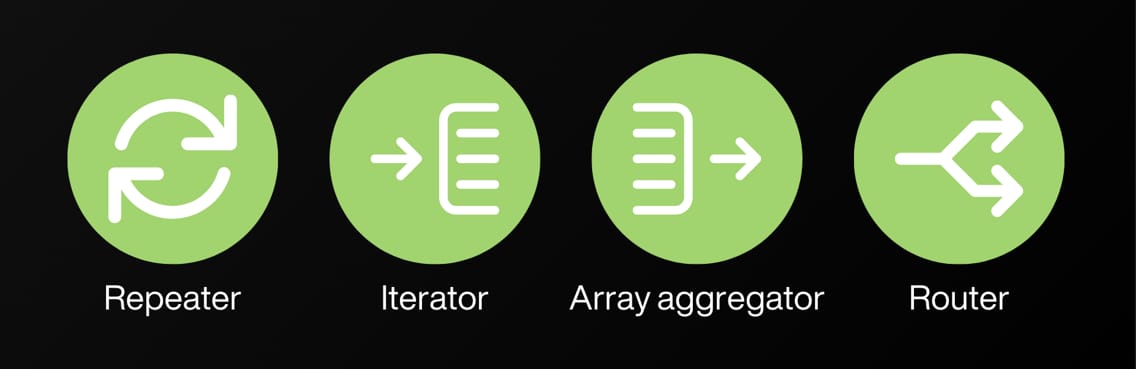 Permiten tener el control total sobre cómo fluye la información entre los módulos de tu escenario: filtrar, dividir, agrupar, repetir...