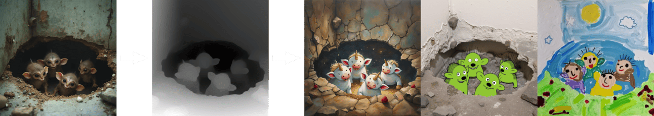 FLUX.1 Depth utiliza mapas de profundidad para entender las proporciones y formas de la imagen original.