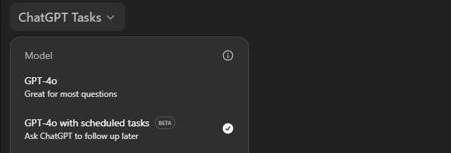 Se puede acceder seleccionando "GPT-4o con tareas programadas" en el menĆŗ desplegable de modelos.